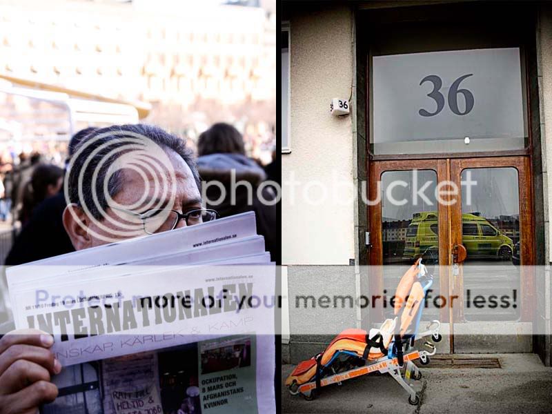Var på väg ner till stan för att fika med soldatstoffe när jag gick förbi denna situation med båren. Inget dramatiskt alls med den, fast jag tycker bilden blev rätt intressant med den tydliga reflektionen av ambulansen,
