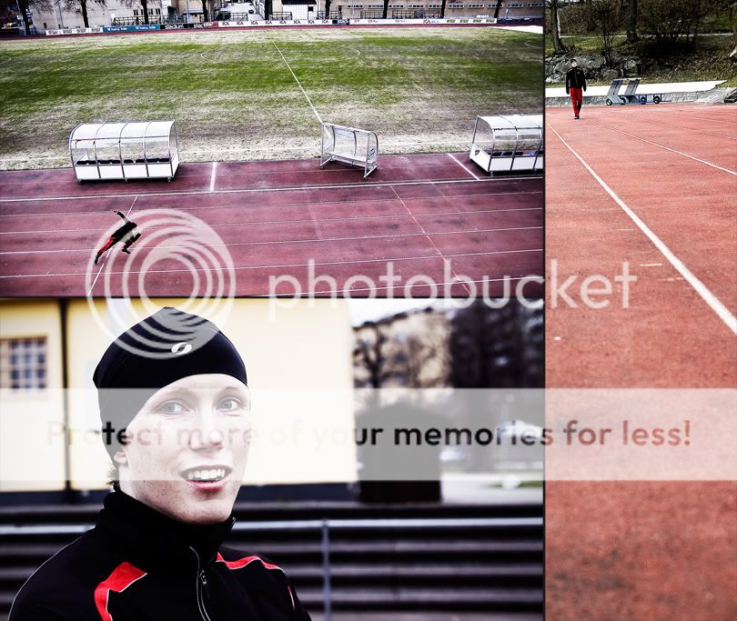 ordet "weird" betyder så mycket, snälla beskriv mer. Men han såg faktiskt lite skum ut, nästan lite sminkad kring ögonen- så det är på riktigt. Gjorde bilderna lite skitiga i levels och konstrastmättade för att framhäva ensamheten och det kärva i att träna ensam. Svårt dock att få samma färgtemperatur på alla bilder. Försökte som fan men jag gav upp till slut.Fyra olika färger på löpbanan på fyra olika bilder... inte bra. Man lär sig väl.