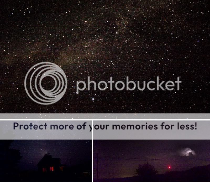 Långa slutartider... kan ge grymma bilder. Då solandet inte fanns i någon större utsträckning, provade jag att plåta lite rymdbilder istället. Stugan ligger lite avsides och det finns inge ljus som stör ut skyn, vilket gör att en stjärnklar natt blir helt spektakulär. Resultatet av mina försök till att vara Hubble ser ni ovan, kanske inte i samma klass som NASA men inte illa för att vara med en 50:a. Och en liten liten blixt fick jag med också.