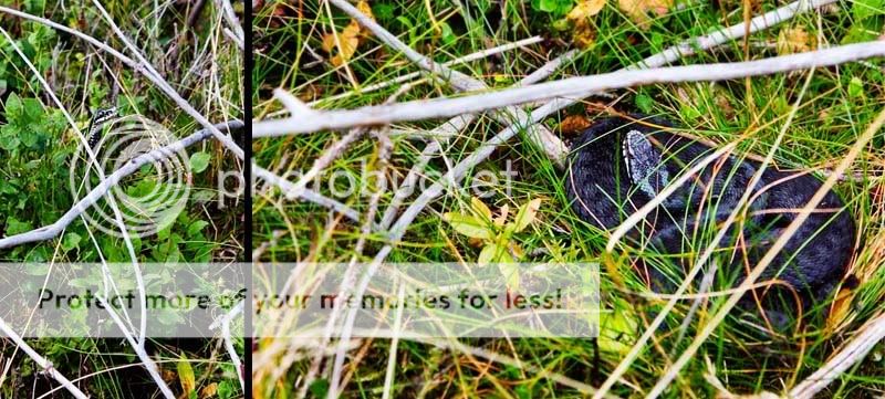 Tillbaka i Sundsvall igen för nya studier. Efter att ha druckit välkomstöl o det skarpaste kände jag och två andra jökar att lite tid i skogen skulle göra en gott. Vi vandrade ut i Crackstaskogarna och möttes av både sol och regn. Något som resulterade i att mina kläder nu ligger i ett torkskåp. Väl i skogen var det stor grönska och Stoffe militär som han är, kunde inte låta bli att smyga i det gröna. Men det fanns även annat som smög i myllan. Vi stötte på en riktig bad boy till huggorm som surna till rejält efter att militär'n inte tittat var han satte fötterna. Han vässte att vi genast skulle lämna hans hood annars fick vi smaka knogmacka, vi bad om ursäkt och förpassade våra lekamen till annan plats för att undvika huggar'ns vrede. Observera attackläget på den vänstra bilden.