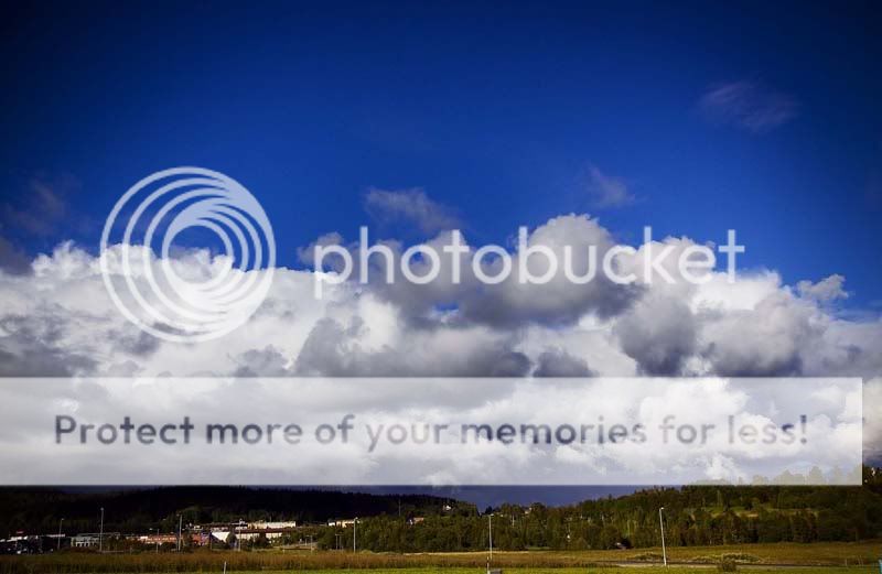 Mycket blått blev det... På vägen upp till Sundsvall möte jag en blå kille på centralen. Han sa inte om han hängde med "blue man group", men jag tror att han minst är en wannabe. Väl i Sundsvall som populärt kallas "drakstaden" av vissa, såg jag att det döljer sig drakar lite var stans, även i buskarna utanför skolan. Åland spelade fotboll när jag gick förbi, jag tror han spelade i det blå laget. Om inte annat var himlen blå. Utanför Birsta var himlen också blå, fast med inslag av tok-oväder. Underligt att se regn o rusk samtidigt som solen lyser på en från en klarblå himmel ovan.